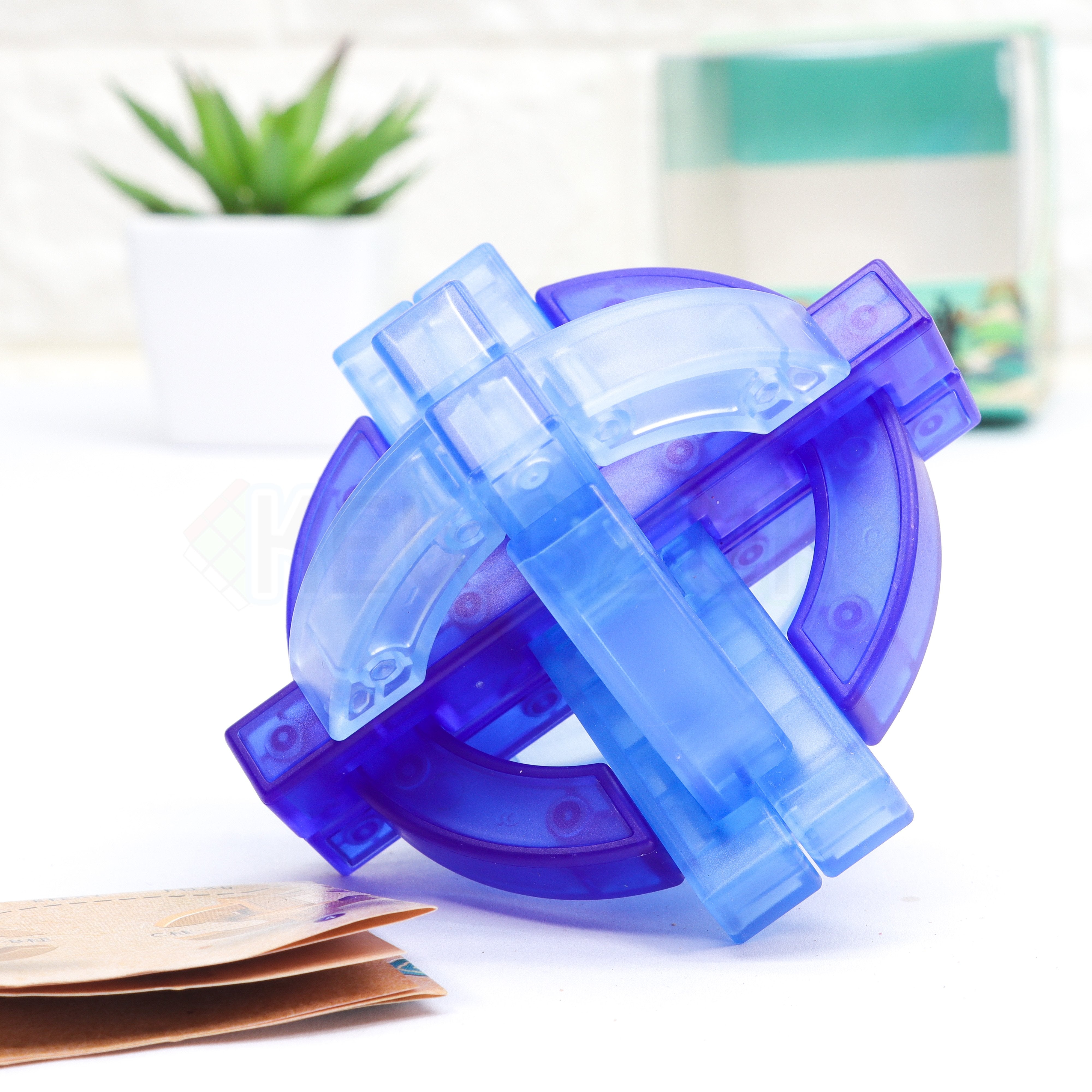 The Kongming Sphere is a fresh take by QiYi on a popular wooden puzzle. This version is made of ABS plastic and boasts a beautiful crystal clear blue exterior.