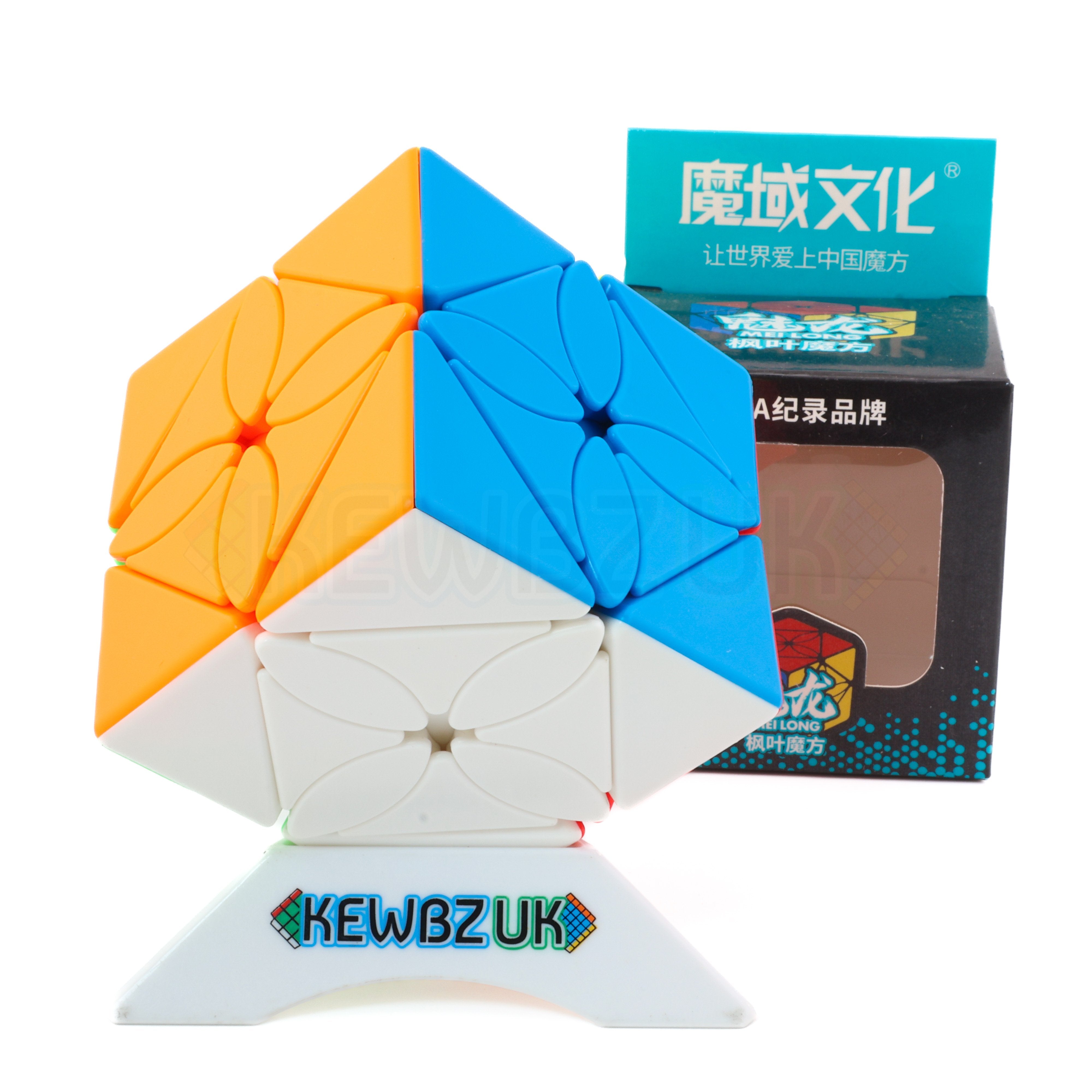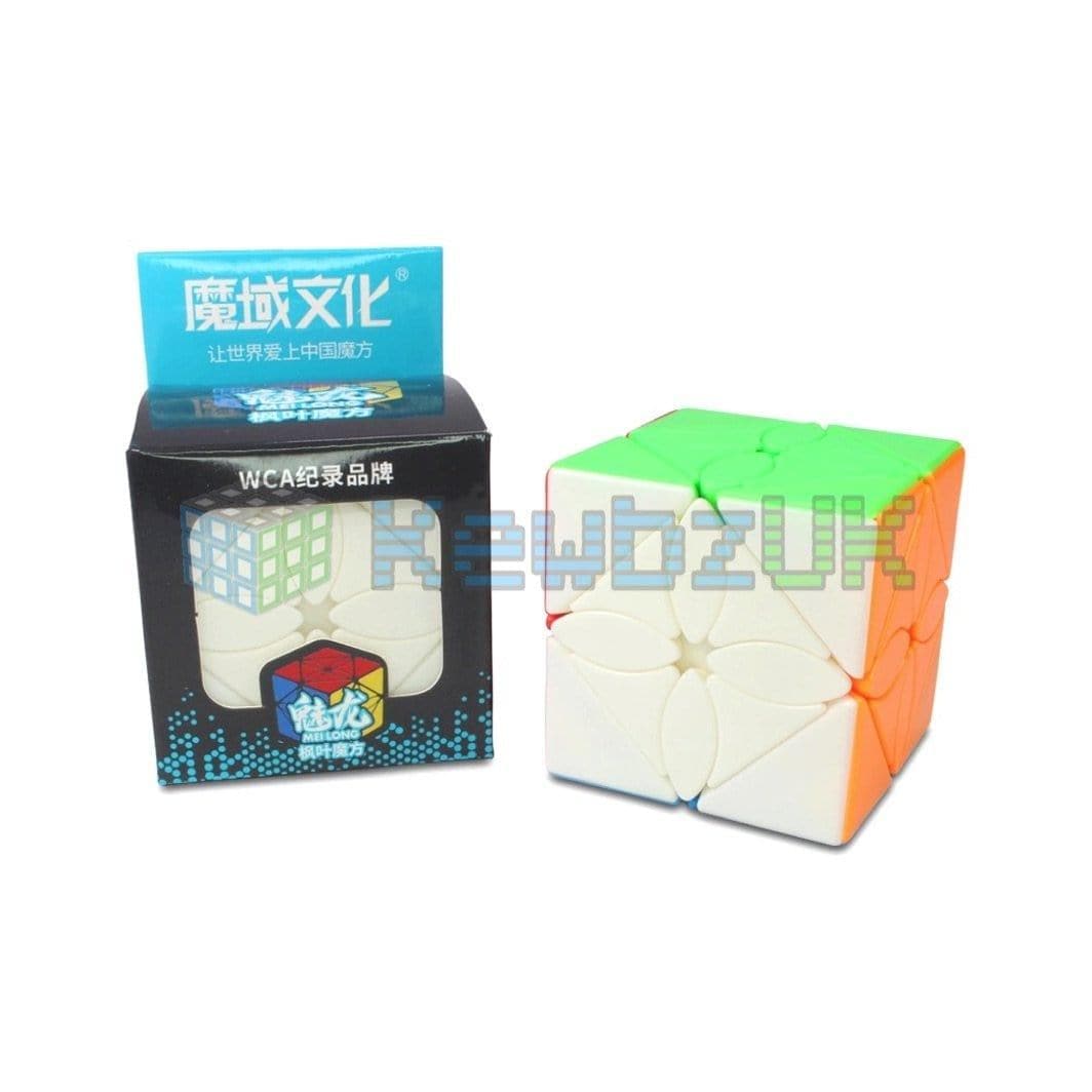 The MFJS Maple Leaf Skewb can be likened to a mixture of a curvy copter and a Skewb. If you want to keep it simple you can scramble it just like a Skewb. However, if you perform a 45-degree Skewb turn, you then unlock another axis of movement similar to the curvy copter cube.