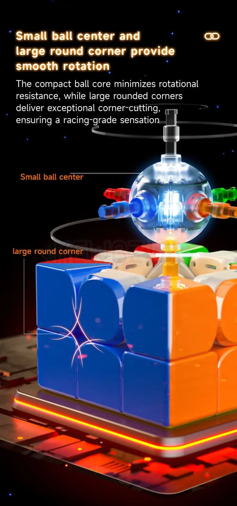 Its key features include 7 spring compression settings that require no additional tools, as well as 48 factory-installed magnets. Additionally, its long-lasting battery can endure up to 800 hours of solving sessions (equivalent to 2 years of daily one-hour use), while delivering a smooth and effortless turning experience.